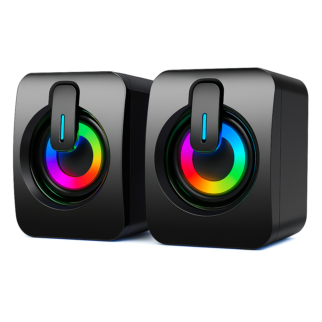 Feita em alumínio resistente, a MP 5.0 combina durabilidade, estilo e desempenho em um único produto. Perfeita para computadores, notebooks e setups gamers, ela transforma qualquer ambiente em um show de som e luz.
