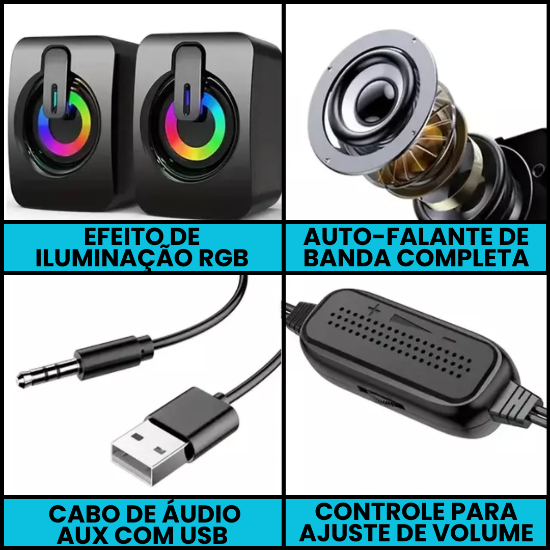 🌈 Luzes LED Vibrantes: Efeito visual moderno que acompanha o ritmo da sua música.