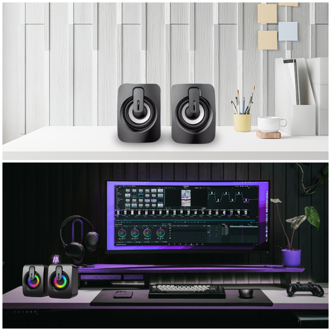 Feita em alumínio resistente, a MP 5.0 combina durabilidade, estilo e desempenho em um único produto. Perfeita para computadores, notebooks e setups gamers, ela transforma qualquer ambiente em um show de som e luz.